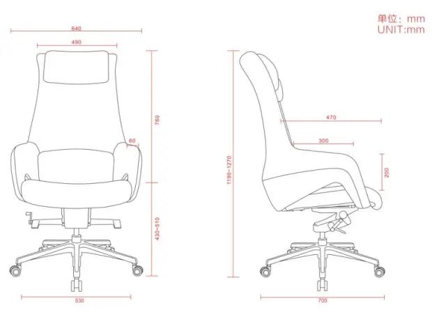 Size: W640*D700*H1190-1270H MM